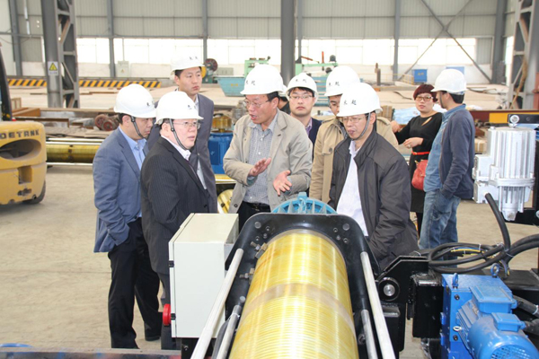2015-4-11上午9点,中国北起院,株洲天桥,山起等一行12位领导与**到河南东起集团考察指导工作,东风公司总经理李伟敏,副总经理李伟娟,东起公司副总经理王沧修,工程师李冲,孟帅等参加了接待陪同,参观过程中,李总,王总向客人讲解了东起的发展与**,东起公司自主研发的欧标起重机得到了客人的好评与认可。并提出了宝贵的技术改进建议,考察指导在热情洋溢的气氛中***结束。