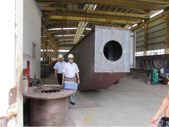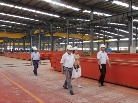 在我公司领导的陪同下,考察组一行先后到主梁生产车间、加工中心、小车车间等现场实地参观考察,听取情况介绍。